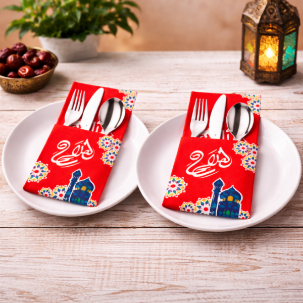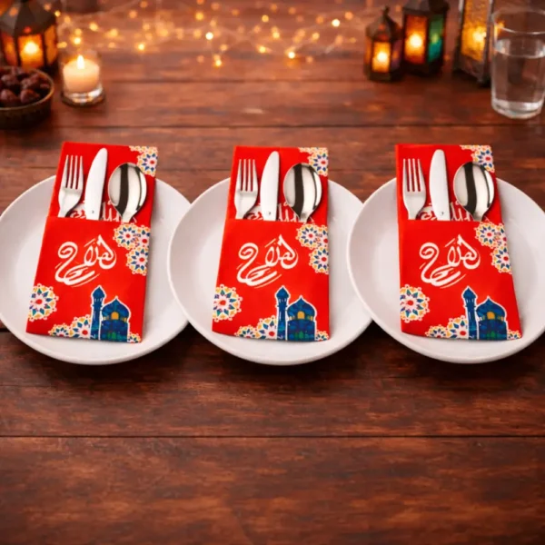 ارتقِ بأسلوب ضيافتك وأضف لمسة راقية ومنظمة لمائدتك الرمضانية مع حامل أدوات طعام ورقي لأدوات المائدة. صُمّم لحمل الملاعق والسكاكين والشوك، ويجمع بين العملية وسحر التراث ليحوّل ترتيب المائدة إلى لوحة فنية متناغمة