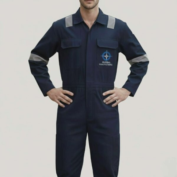 Work Overall with Reflective Tape equipped with reflective tape, ensuring comfort and protection across various work environments. Its practical design allows for ease of movement while enhancing safety in low-light conditions. Made from durable cotton and polyester blend, it offers long-lasting wear and easy care, with the option to add your company logo or details through custom printing.